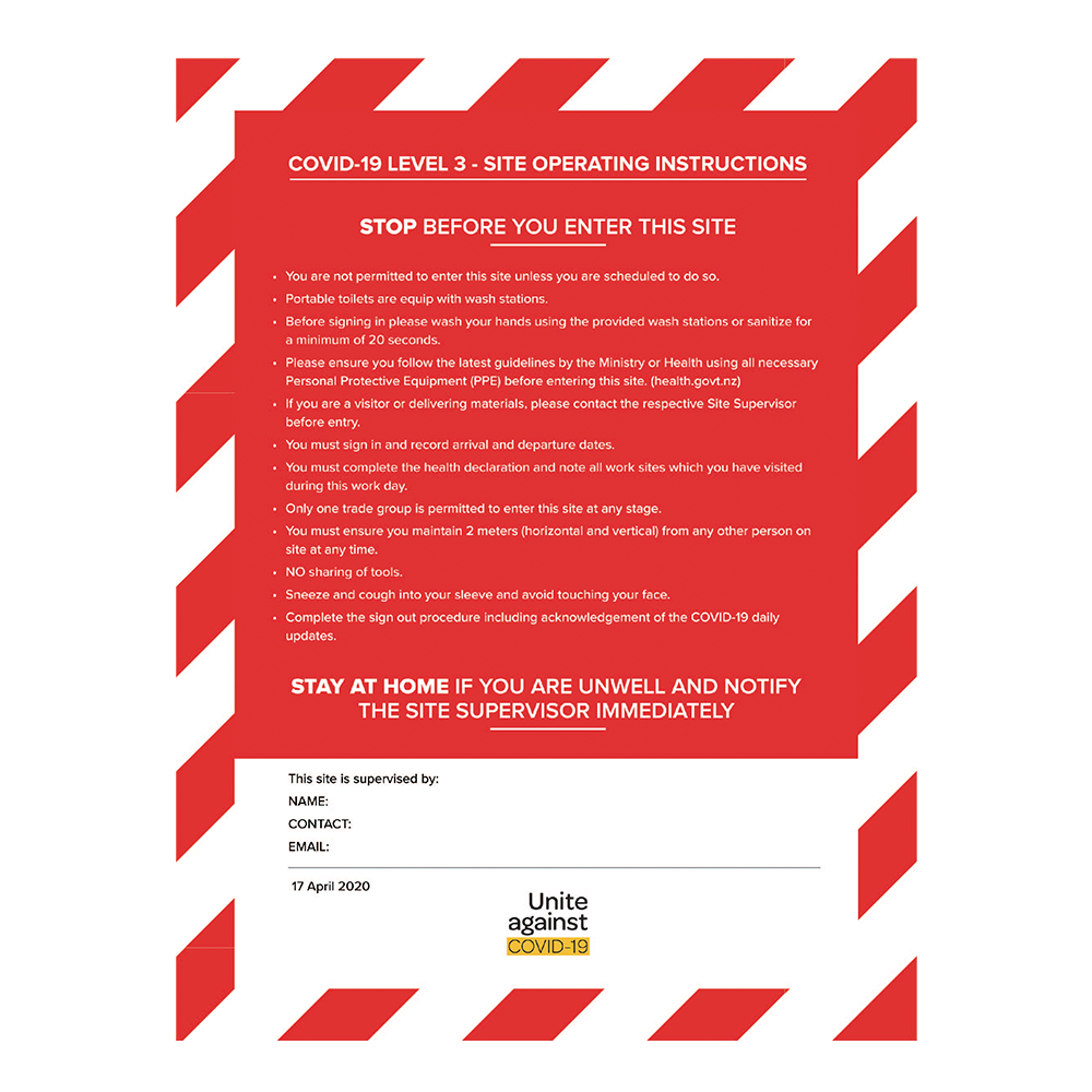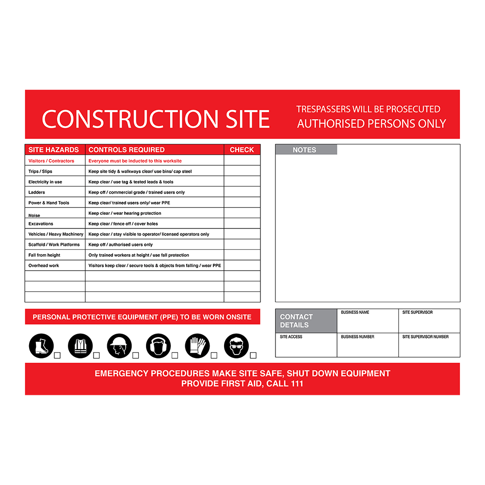 CONSTRUCTION SIGNS CONSTRUCTION SIGNS Clear Filters Filter Clear Filter Danger Site Safety Sign from $45.00 Danger Site Safety Sign from $45.00 Hazard Infomation Board from $45.00 Caution Construction in Progress Sign from $45.00 Construction Site Check List Sign from $45.00 COVID Level 3 Site Operating Instructions Sign from $45.00 COVID Level 3 Site Operating Instructions Sign - Chinese from $45.00 COVID Level 3 Site Operating Sign - Chinese from $45.00 COVID Level 3 Site Operating Sign from $45.00 No results found No results match your search. Try removing a few filters.